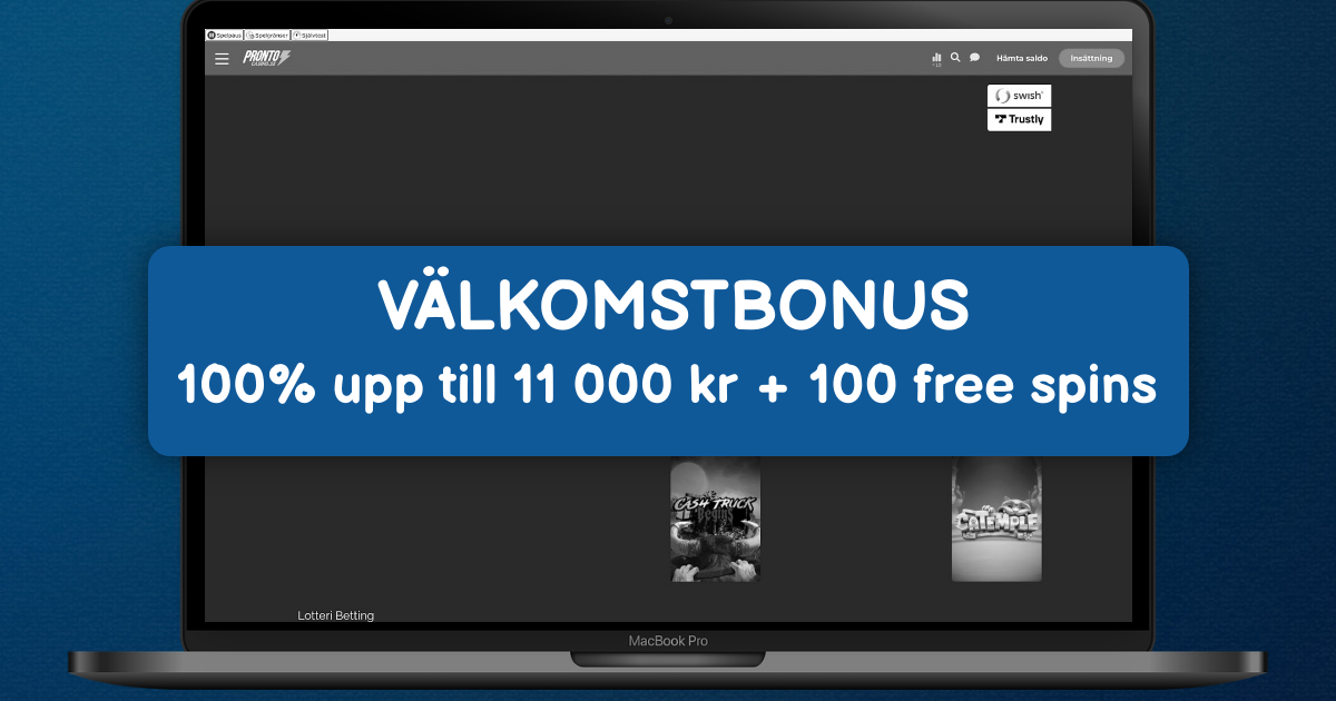 Pronto Casino välkomnar spelare i Sverige med en smidig upplevelse från första klick. Som ny kund får du en välkomstbonus på 100% upp till 2000 kr och 100 free spins. Bonusen har 20x omsättningskrav på bonusbeloppet. Casinot har svensk licens utfärdad av Spelinspektionen vilket ger trygga betalningar och starkt konsumentskydd. Registrera dig på sekunder med BankID och njut av snabba uttag via Trustly eller Swish. Utbudet rymmer slots, jackpottar, live casino och klassiska bordsspel. Du hittar populära titlar från NetEnt, Playn GO, Pragmatic Play och livebord från Evolution. Mobilversionen är snabb och fungerar utmärkt på iOS och Android så du kan spela var du än är. Minsta insättning är låg och uttag behandlas automatiskt när ditt konto är verifierat. Bland fördelarna finns enkel inloggning, svensk support och tydliga verktyg för ansvarsfullt spelande. Välj Pronto Casino i Sverige för ett modernt spelande med fokus på säkerhet och underhållning. Allt sker snabbt och enkelt.